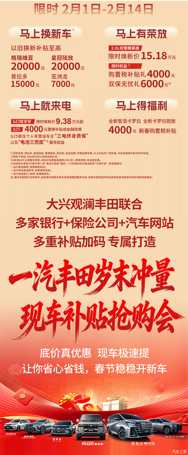 【大兴观澜丰田】马上有丰年 回家共团圆,一汽丰田岁末冲量现车补贴抢购会