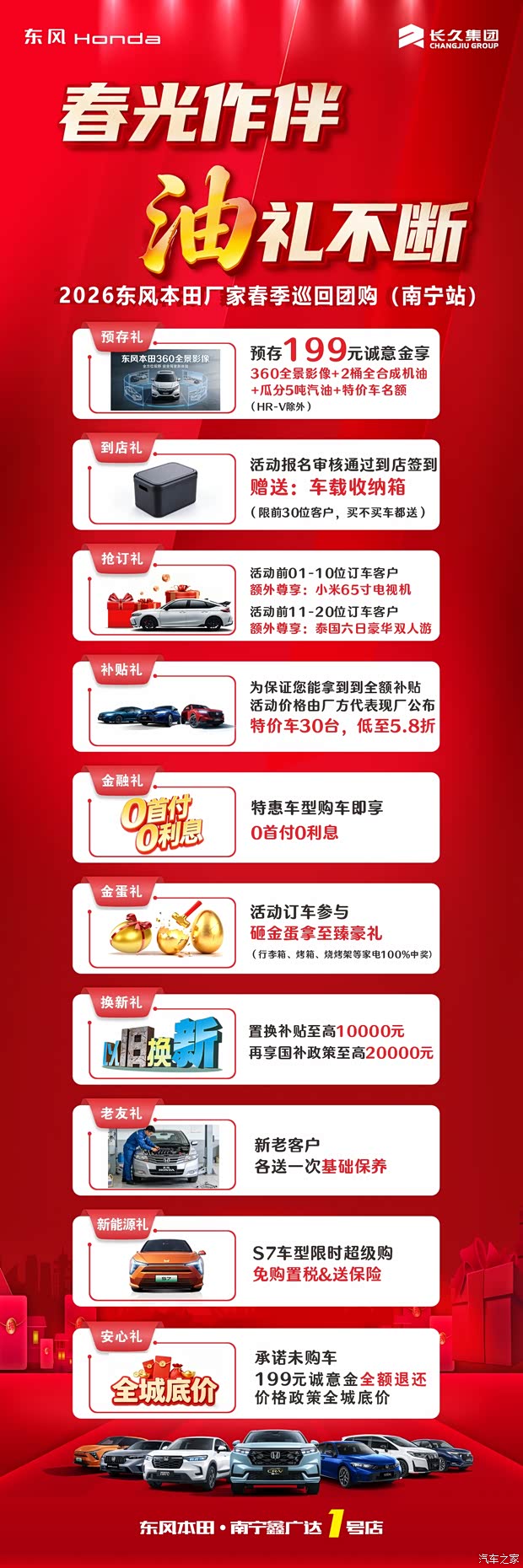宝子们注意!2026 东风本田厂家春季巡回团购(南宁站)来炸场啦!这次的福利直接拉满,每一项都让你心动到跺脚!