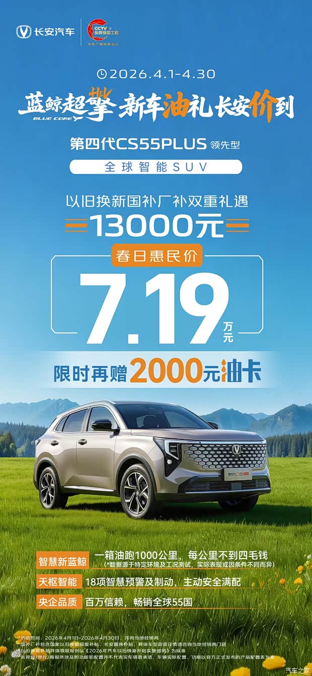 第四代CS55PLUS领先型春日惠民价7.19万