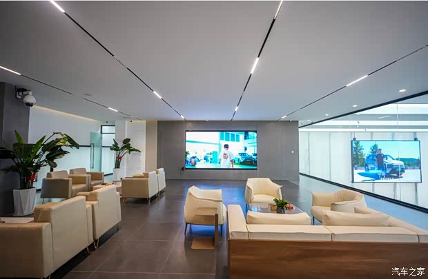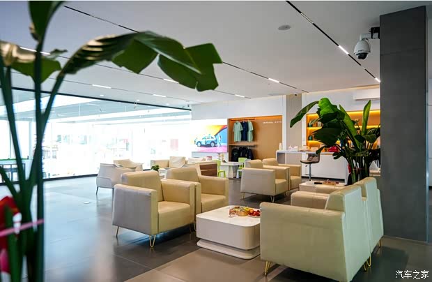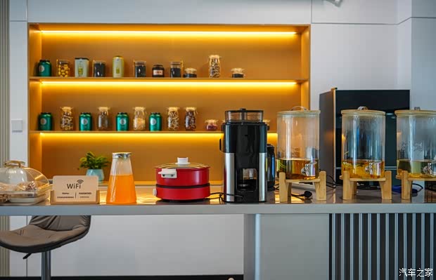 宽敞整洁的售后顾客休息区,提供免费的食品和饮品,并且客户可以透过玻璃时刻观察自己车辆的维修情况