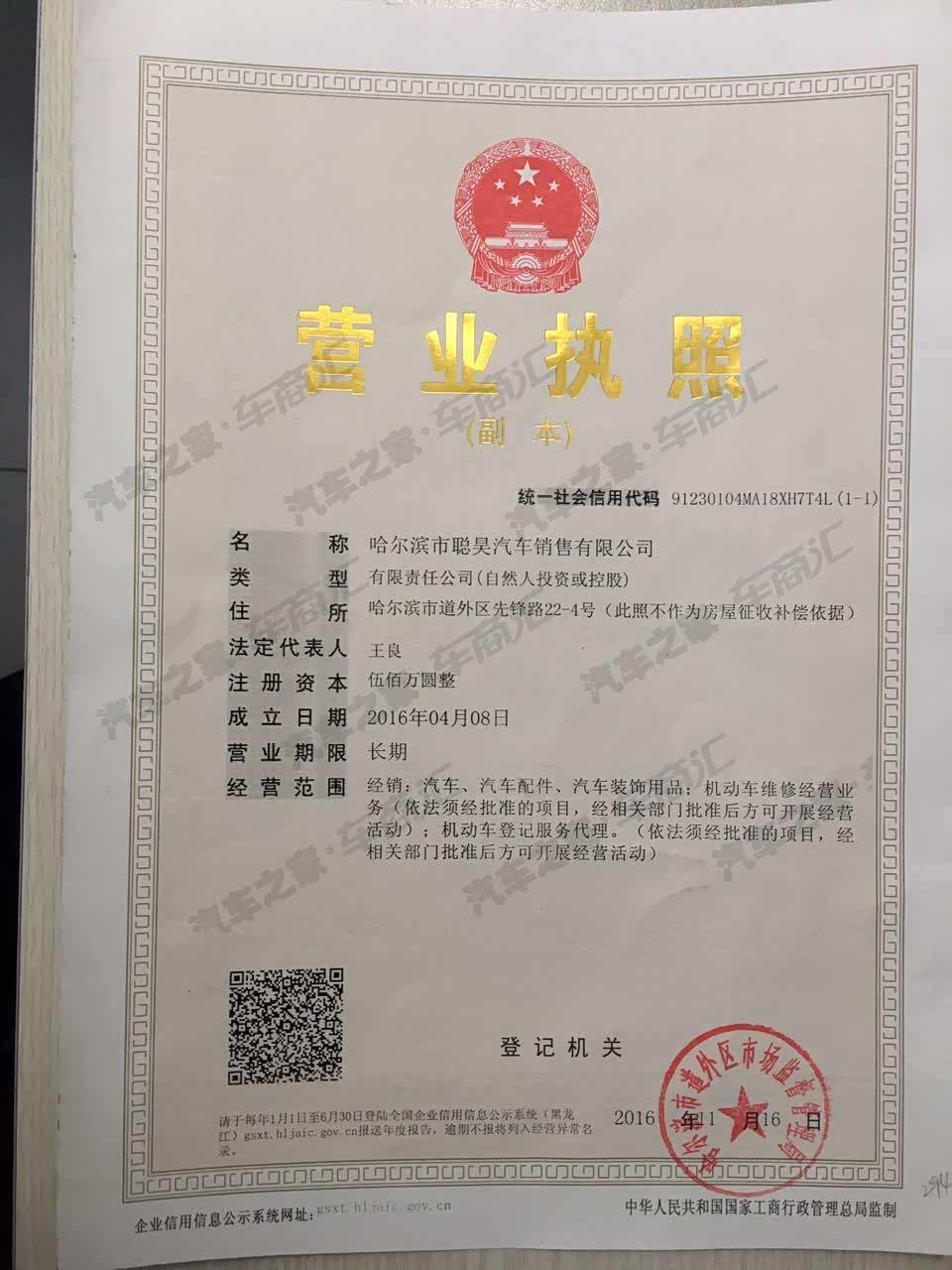 哈尔滨市聪昊汽车销售有限公司,成立于2017年9月,注册资金1000万元,员工70余人