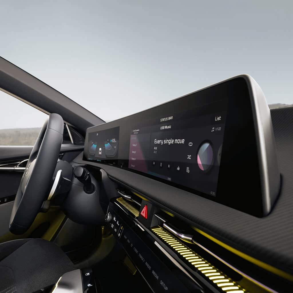 起亚EV6在人车交互方面展现出色能力,依靠智能科技搭建便利交互场景与悉心服务,为用户带来现代化的舒适出行新颖体会。起亚EV6搭载了Kia Connect&百度智能互联服务3.0,配合全景曲面显示屏,为用户提供了舒适、便捷的出行体验。双音区语音控制功能非常贴心,驾驶员和副驾驶可以分别使用语音指令控制车辆的不同功能,而系统能够准确识别并执行相应的命令。实时在线导航功能可以为您实时规划合适的出行路线,避免拥堵路段,进一步的提高了您的出行效率,远程控制功能可以让您在上车之前,提前打开车内的空调,让您在上车的瞬间就能拥有舒适的驾乘环境。起亚EV6用贴心的智能科技,让每一次出行都是美好的回忆。