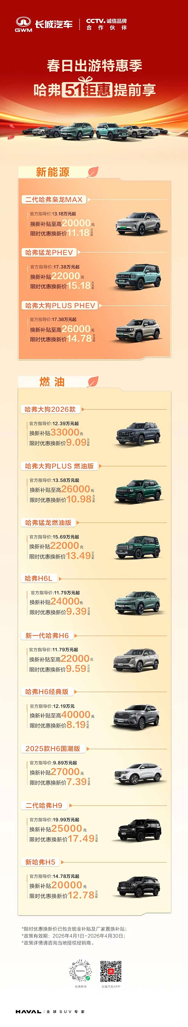 哈弗5.1钜惠提前享 | 4月换新价格速览