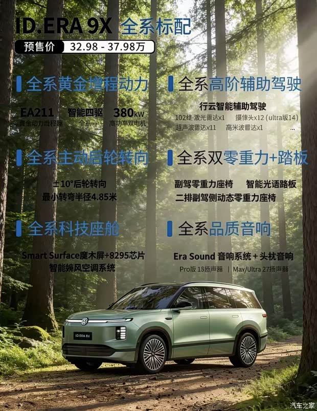 ID.ERA9X 从设计之初就将旗舰智驾定为全系标配,无需额外付费、不设选装门槛,入门版(32.98 万元起)即可拥有行云智能辅助驾驶终身使用权,真正做到 “入门即豪华、全系皆满配”。这一策略彻底告别行业常见的 “基础版 + 付费升级” 模式,让每一位用户都能享受智驾体验。