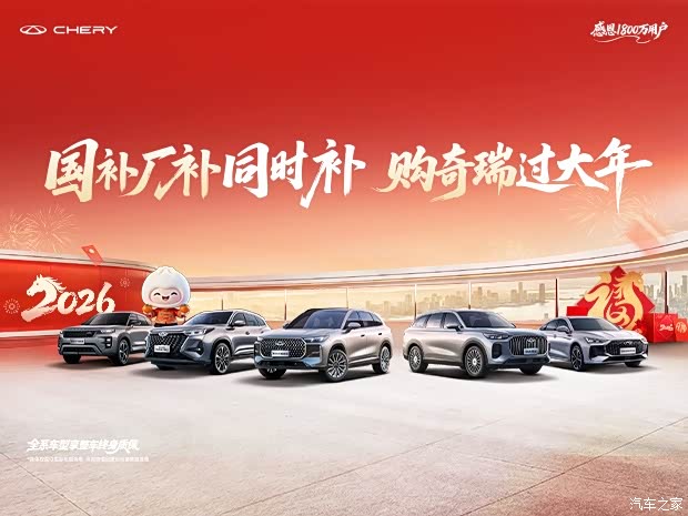 正是购车的好时机!国补厂补同时补 购奇瑞过大年 现已盛大开启,即日起至2月28日,奇瑞全系车型推出重磅优惠活动,为广大消费者提供一系列诚意满满的购车福利。无论是寻求经济性与空间的家庭用户,还是注重智能与性能的年轻群体,都找到心仪的选择。此次购车盛宴汇聚了众多亮点车型和超值优惠,不容错过!