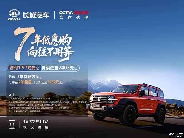 >坦克300燃油版:坦克品牌置换或增购补贴10000元,长城品牌(非坦克)置换或增购补贴7000元,外品牌置换补贴7000元;
