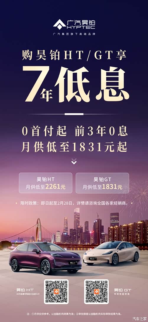 硬核的产品力之外,广汽昊铂还为用户提供了丰厚的金融政策和购车权益。现在下单广汽昊铂HT,支持“7年低息,0首付起”的灵活金融方案,且前3年还0息,月
