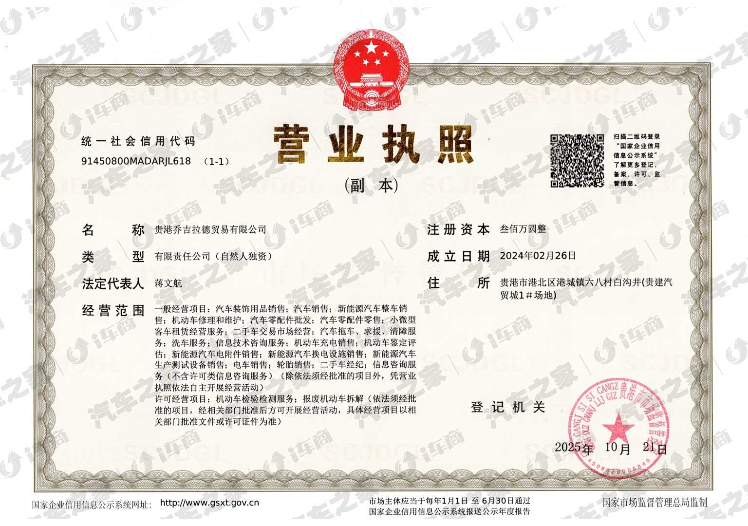 奇瑞汽车贵港乔吉拉德体验中心,坐落于贵港市贵建汽车城内,是奇瑞汽车授权贵港地区的品牌经销商,占地面积2500多平方米,是集整车销售、售后服务一体化管理的高标准、现代化4S店,构筑了汽车美容、理赔、续保、上牌、年审、二手车置换等多元化一条龙服务,业务范围覆盖贵港三区两县市,目前我店已同步授权桂平、平南地区指定专营店,为贵港三区两县市提供便捷的购车服务。