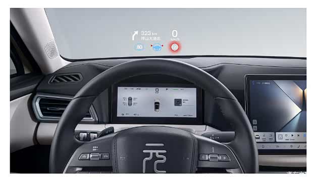 元 UP 的智能座舱高阶版-DiLink 100 功能丰富,支持全场景智能语音控制,3D 控车让用户可以在屏幕上 360 度查看车辆状态并实现操控。8 英寸 W-HUD 抬头显示系统,将重要行车信息投影至前挡风玻璃驾驶员视野内,让用户无需低头即可了解行车关键信息。12.8 英寸智慧屏幕集成导航、影音娱乐、蓝牙电话、智能语音等多项功能,带来智能化的舒享体验。