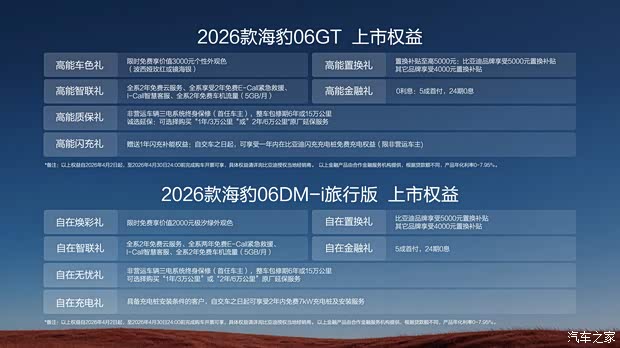 4月2日,比亚迪海洋网双车齐发——2026款海豹06GT与2026款海豹06DM-i旅行版同步上市。其中,2026款海豹06GT官方指导价为12.89-16.99万元,2026款海豹06DM-i旅行版官方指导价为11.19-13.99万元,两款新车还为用户提供涵盖购车、选装、养护等在内的多项权益,让用户真正实现无忧用车,2026款海豹06GT用户更可享受1年闪充补能权益,尽情领略全场景自由闪充的科技魅力。