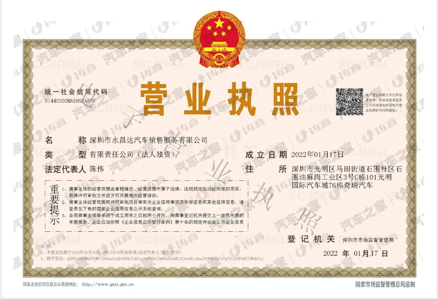 深圳市永昌达汽车销售服务有限公司(简称深圳永昌达奇瑞4S店)是经奇瑞汽车股份有限公司和祥麒集团授权成立深圳市光明区首家奇瑞4S店汽车经销商,祥麒集团共拥有员工800人,耕耘于汽车行业已有14年发展历程;发展过程中我们坚持:“以客户为中心,以服务为本”的发展理念;集团年均销量8000台,客户遍布全国。