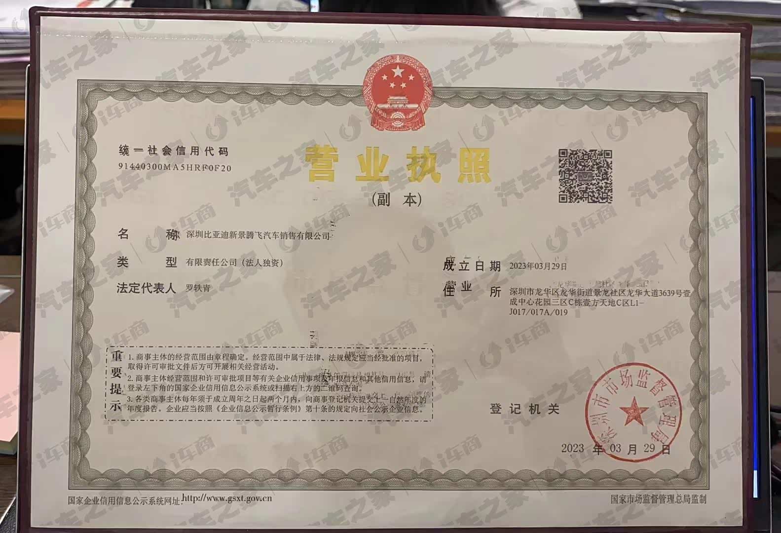 比亚迪王朝深圳新景腾飞店