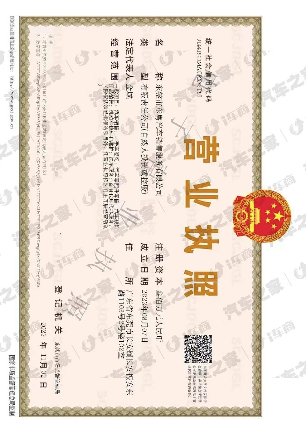 广东东莞东粤汽车销售服务有限公司位于广东省东莞市长安镇振安东路1103号2号楼102室。