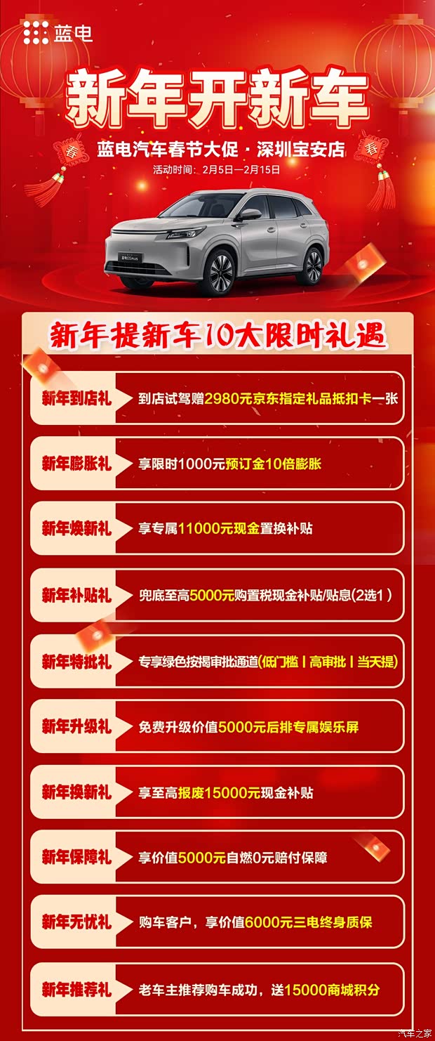 新年开新车 蓝电汽车春节大促低价清库