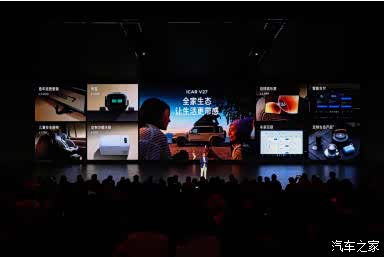 座舱生态方面,iCAR V27 集成生态坞 APP 与智家 APP,可集中控制车内儿童安全座椅、冷暖冰箱等定制配件,还能实现车与智能家电的跨平台互控,打通出行与居家生活的壁垒,构建便捷的智能生活闭环。