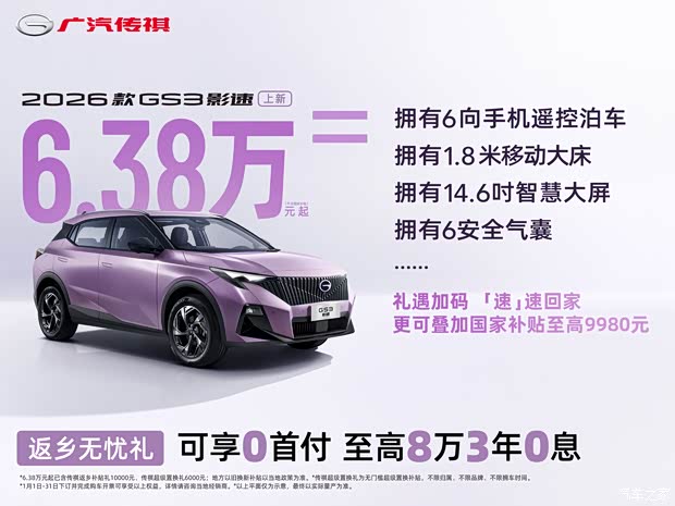 近日,本店内有传祺GS3销售,颜色可选,目前购车部分车型可优惠1.60万元,感兴趣的朋友可以到店咨询购买,详情见下表:
