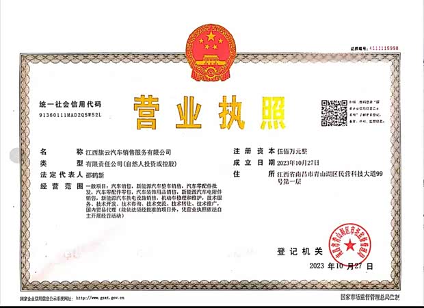 运营主体:江西旗云汽车销售服务有限公司
