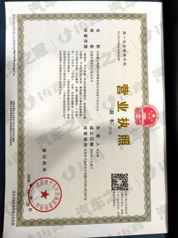 北京鑫达鸿通汽车销售有限公司北京平谷分公司