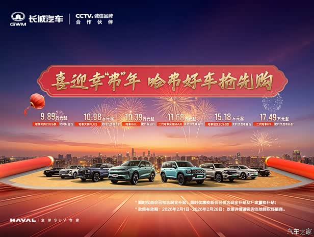 哈弗H6新春购车季火热进行中,现购2024款2.0T四驱Max、1.5T两驱Ultra/Pro/Max/经典版及2025款国潮都市版/冠军版等多款配置车型,可享立减4万元现金优惠。全系车型支持多种颜色选择,主力配置覆盖都市代步至越野驾驶多场景需求。本店特别提供专业金融咨询服务与售后保障体系,现有展厅全系实车备展,欢迎莅临品鉴试驾。根据厂家政策,本次促销活动有效期至2026年2月28日,欲购从速。