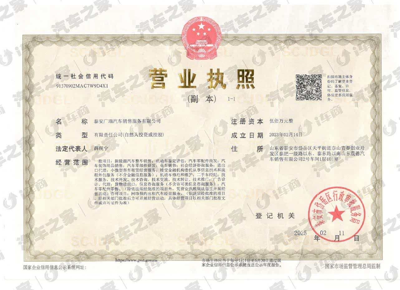 山东省泰安市岱岳区天平街道泰山青春创业开发区泰肥一级路以东、泰东路以南山东震德汽车销售有限公司2号车间1层101室