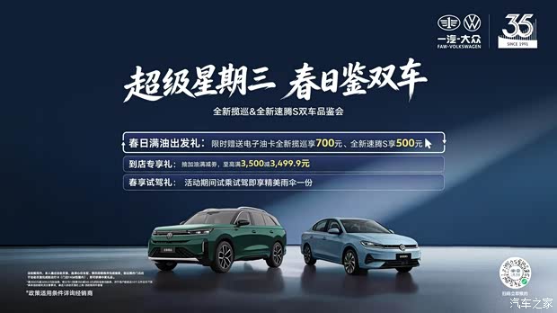 🎊超级星期三,春日鉴双车,一汽-大众全新揽巡&全新速腾S双车品鉴会于4月8日在鄂尔多斯新欣店隆重展开! ⛽春日满油出发礼:限时赠送电子油卡 🎁到店专享礼:抽加油满减券 🌿春享试驾礼:送精美礼品 硬核大五座SUV + 德系家轿标杆,两款重磅车型组成“国民CP”,本周三即将燃爆全场! 活动时间:4月8日 ☎️:0477-8388833 🎯:东胜北出口天意汽车城B区新欣一汽大众4S店