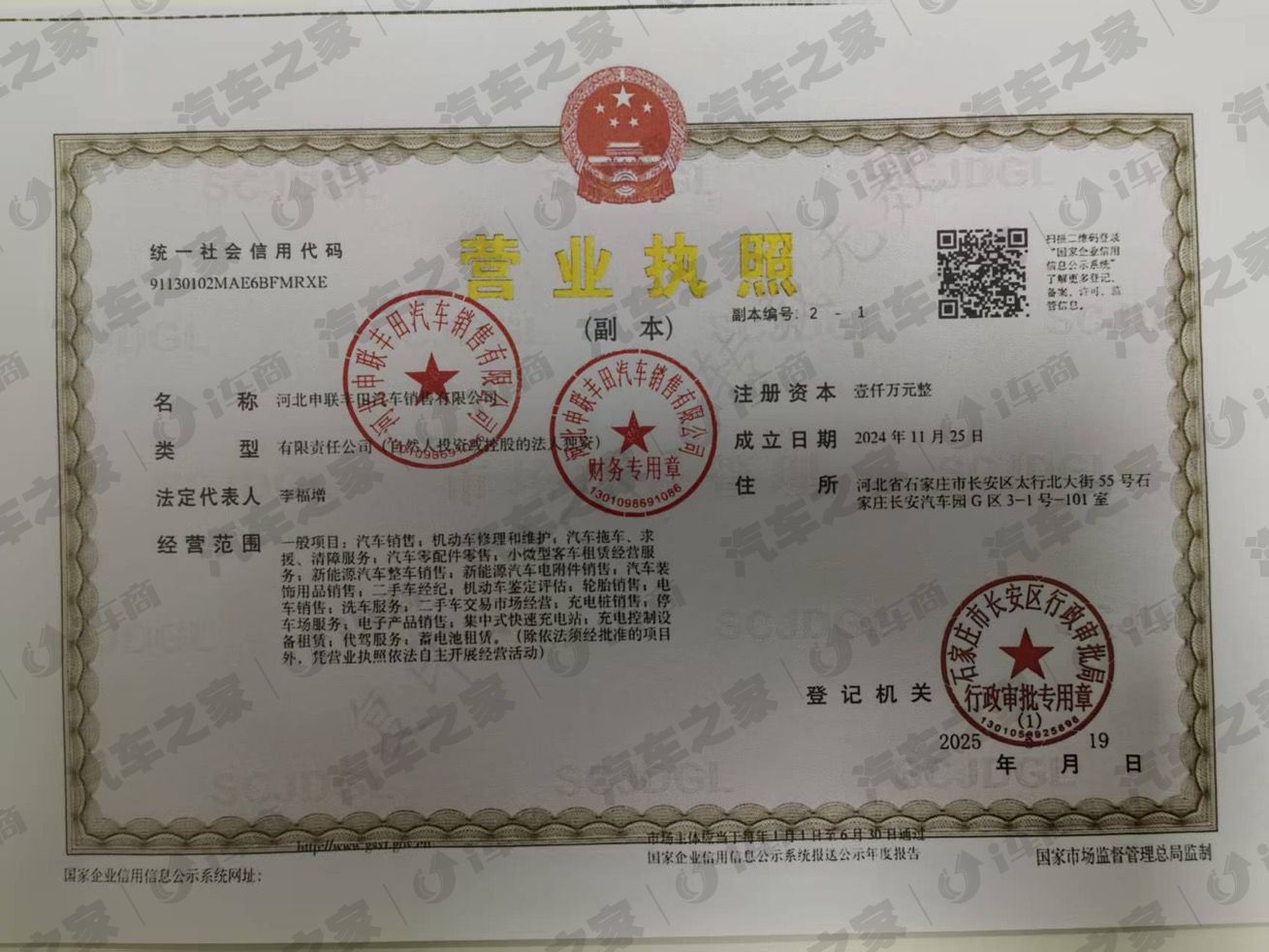 河北申联丰田汽车销售有限公司法定代表人:李福增,注册资金:1000万元,