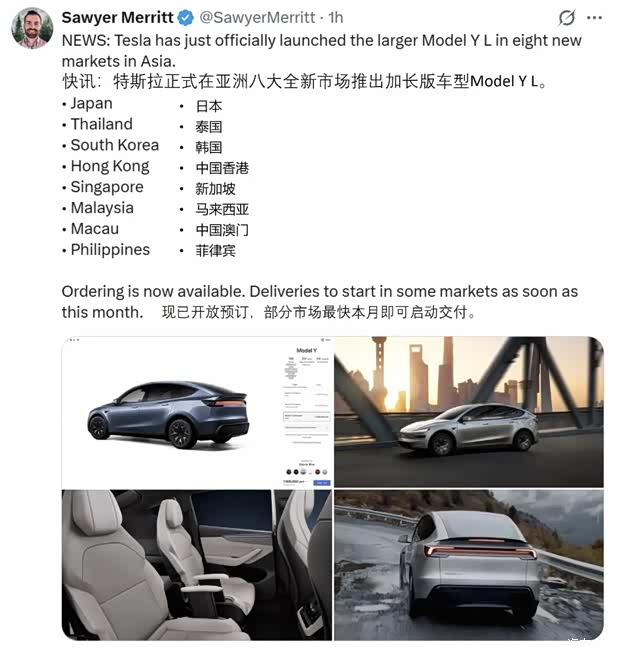 ✨亚太市场:Model Y L成新晋爆款,韩国门店人山人海,八大市场同步开启预订,本月部分地区即可交付,第三排空间获车主高度认可,上海超级工厂出品成品质保障。