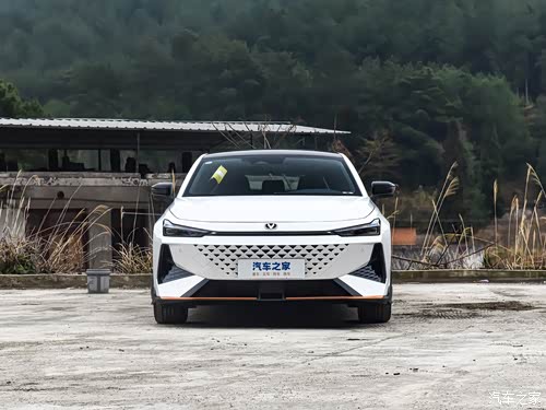 在车的前脸部分,新款长安UNI-V采用了全新的设计,它的前脸设计语言非常的丰富,它的前进气格栅采用的是隐藏边框的设计,进气格栅上采用了镂空式的三角进气口,它采用的是倒梯形的轮廓,看起来非常时尚化。新车的大灯风格也非常凌厉,大灯的轮廓也很突出,大灯的下方是一个立体且凌厉的空气导流槽,前脸的底部还有运动的包围,ZUI底端还有橙色的装饰条点缀。
