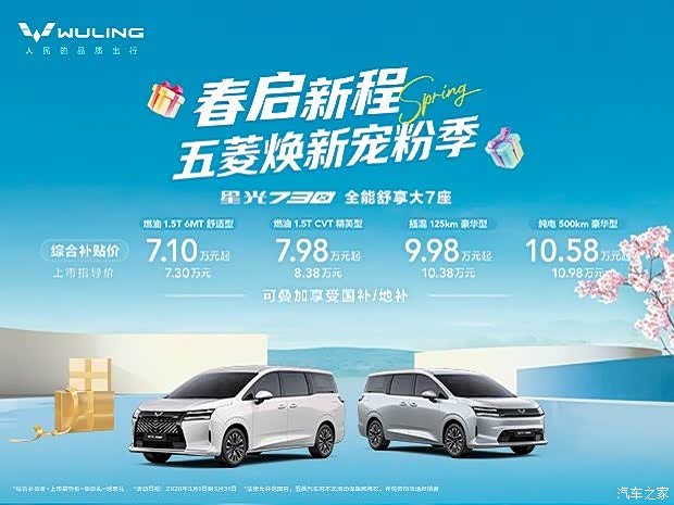 如果你觉得轿车或SUV已经满足不了家庭日常,看看星光730你就明白了。五菱推出的“全能舒享大7座”星光730,正式打破了传统家庭用车的局限,让每一个普通家庭都能轻松拥有高品质MPV。新车覆盖燃油、插混、纯电三种动力形式,共四款车型,上市价7.3万元起,综合补贴价7.1万元至10.58万元,为家庭购车提供了更务实的选择。