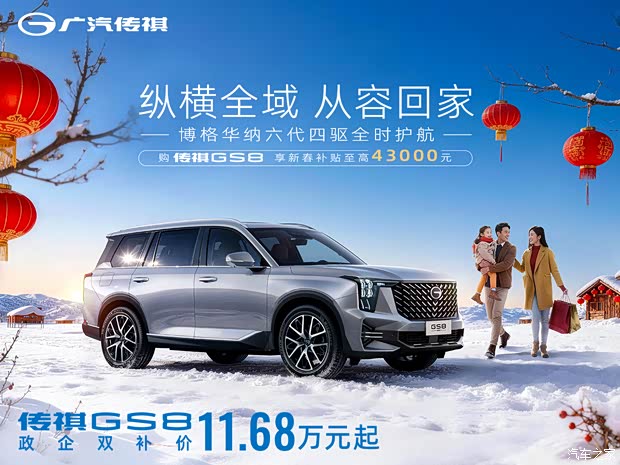 24款GS8超长续航奢享大型SUV、澎湃强动力、傲世超豪华、领潮高科技、科技豪华奢享空间、智能(全新8155芯片)+豪华(专属车标、轻奢内饰)+舒适再升级(超感交互智能座舱、头等舱座椅), 架控随心所欲:博格华纳第六代扭矩管理器、2.0TGDI+8AT+AVDC超级动控组合