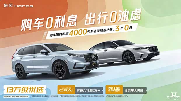 安徽安佳东风本田2026-04-04 10:08 · 合肥 4月全系现车,全面大促!