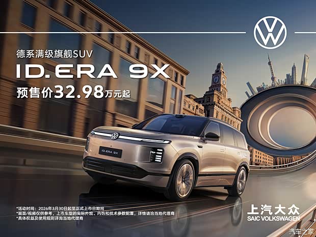 上汽大众ID.ERA 9X,现已开启预售。作为大众9系旗舰增程SUV,车长超5.2米,2+2+2六座布局,搭载动态零重力座椅,奢享舒适座舱。 黄金增程系统,纯电续航超400km,综合续航突破1600km。首发Momenta R7智驾模型,搭配多传感器融合感知,全场景智能辅助。Smart Surface魔术屏、后排巨幕娱乐屏,科技感拉满。 德系精工与前沿智能融合,泰安金驰新车现已到店, 32.98万起,欢迎莅临泰安金驰展厅,解锁高端出行新体验。