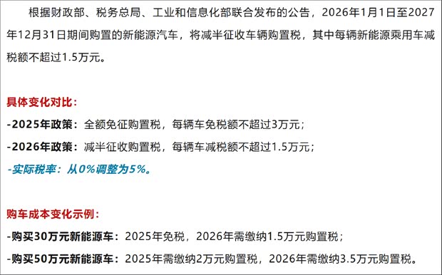 一方面,财政部、税务总局、工业和信息化部四部门联合宣布,2026年1月1日起,新能源汽车购置税补贴退坡,意味着车企不能再像以前一样,只靠国家养着了!