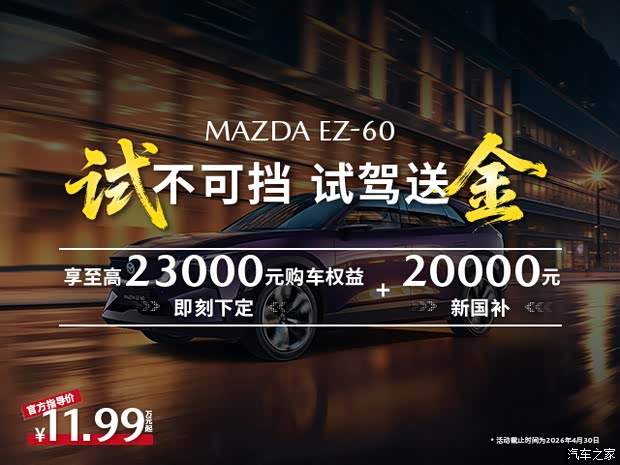 长安马自达EZ-60,以“宽体高能”之姿,为你的露营装备腾出无限可能。更在这个四月,为你备好六重春日厚礼,让换车像春游一样轻松,让出发变得毫无负担。